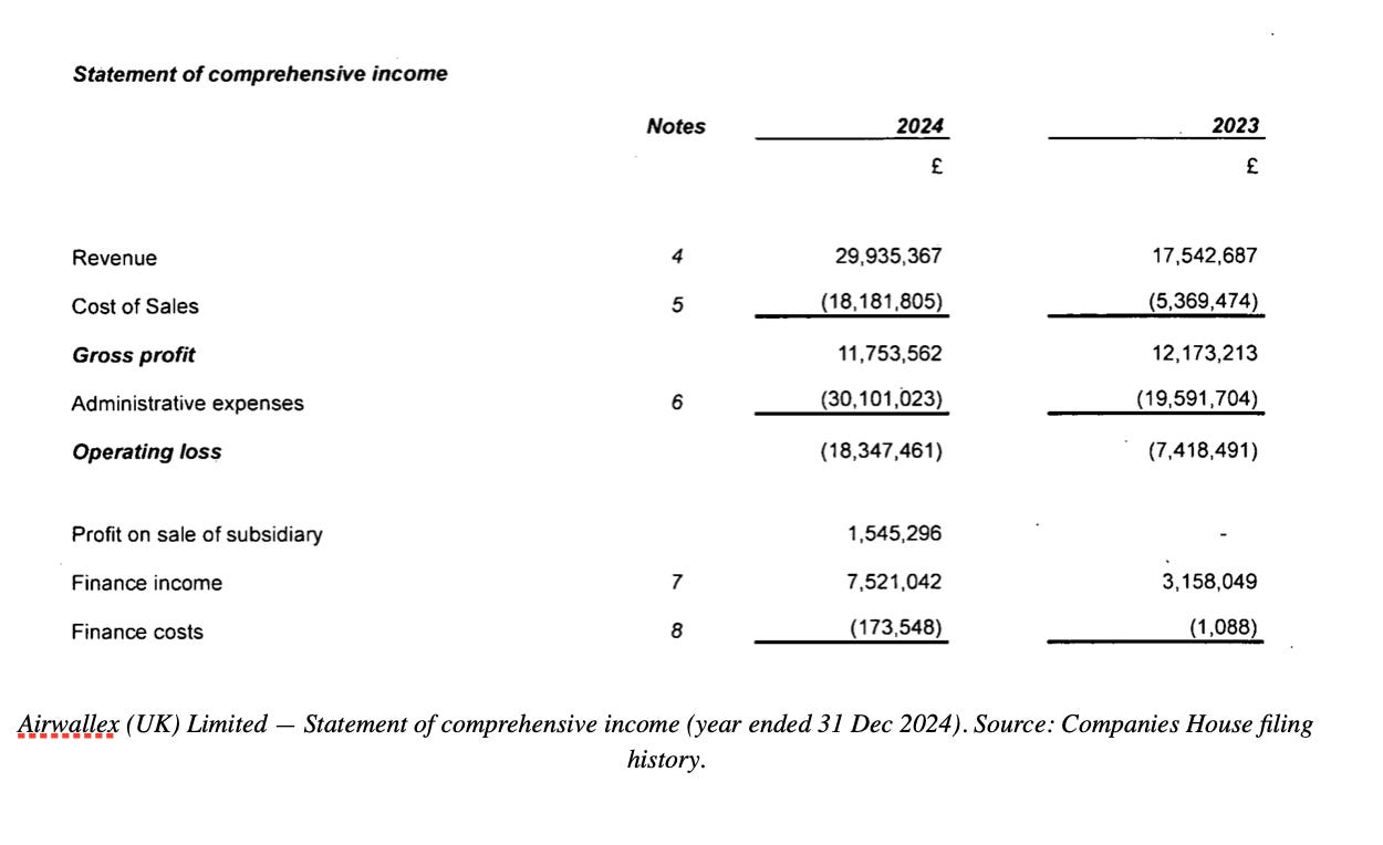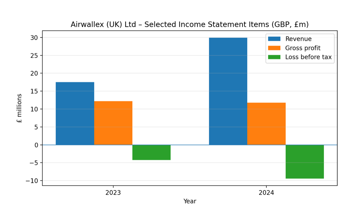 Airwallex is privately held, so full consolidated financials are not publicly available. The most concrete audited numbers in the public domain come from statutory filings of subsidiaries (example: Airwallex (UK) Limited accounts filed at Companies House).