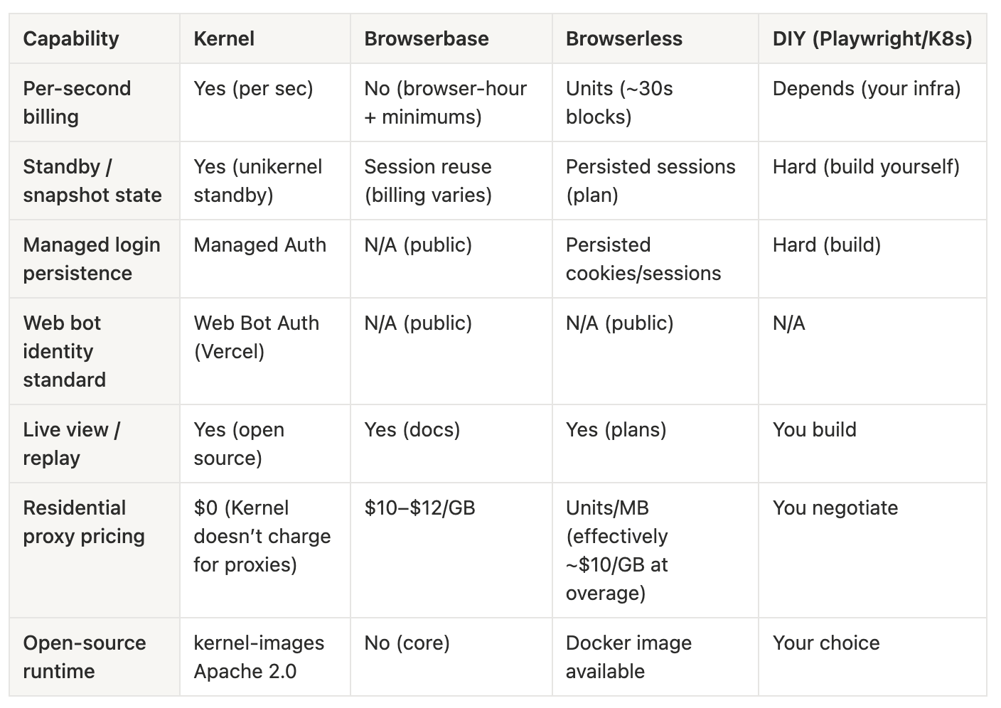 Trust moat: if agent identity standards (Web Bot Auth) and Managed Auth become table stakes, Kernel’s early partnerships + integrations can lock in workflows.