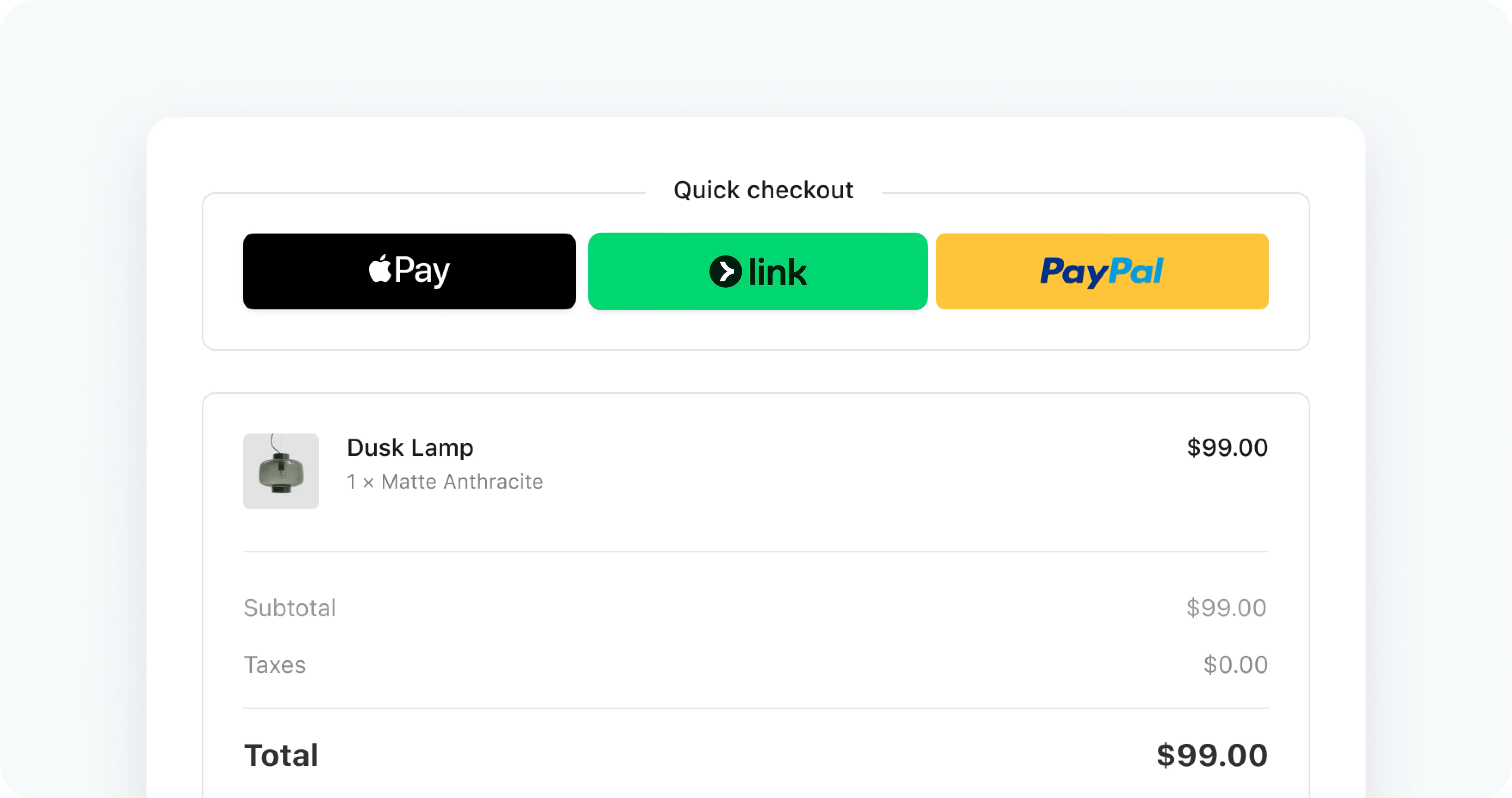 Platform checkouts and wallets: PayPal, Shop Pay, Amazon Pay.