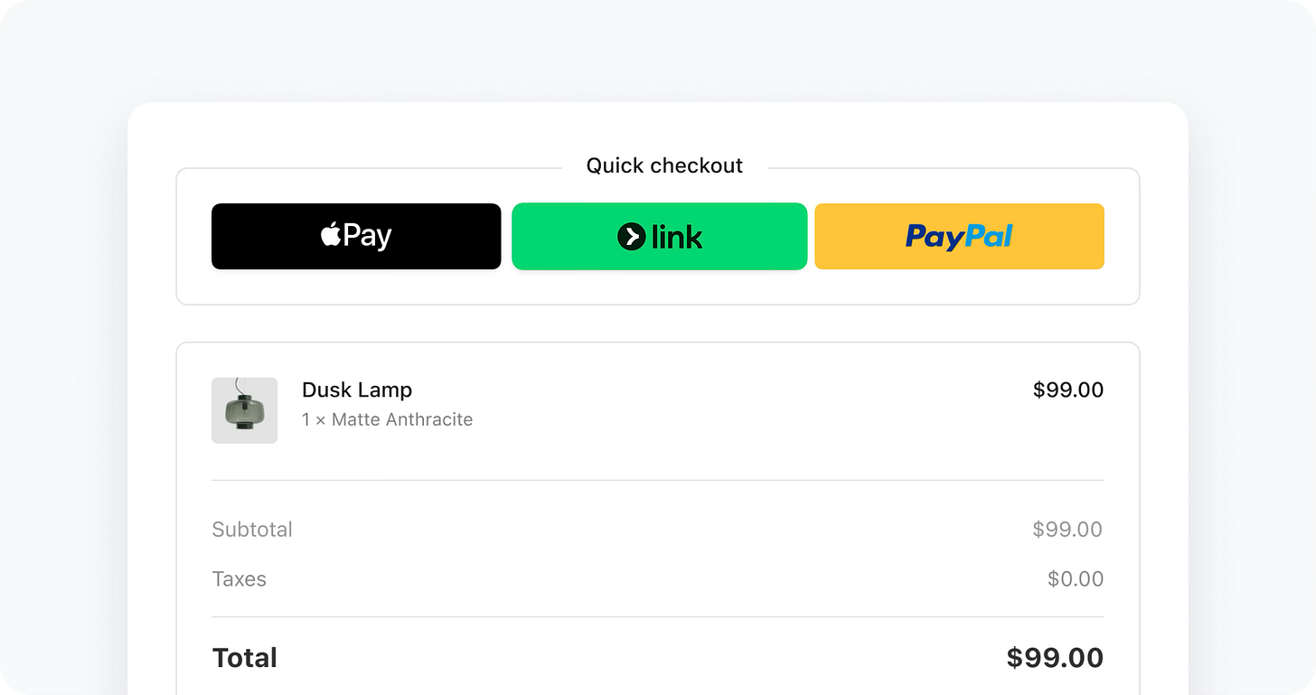 Link is uniquely positioned because it rides inside Stripe’s distribution: Stripe’s checkout components are already embedded across a huge long tail of the internet. Link is not asking merchants to rip-and-replace their payment stack; it is an option that slots into the existing Stripe surface area.