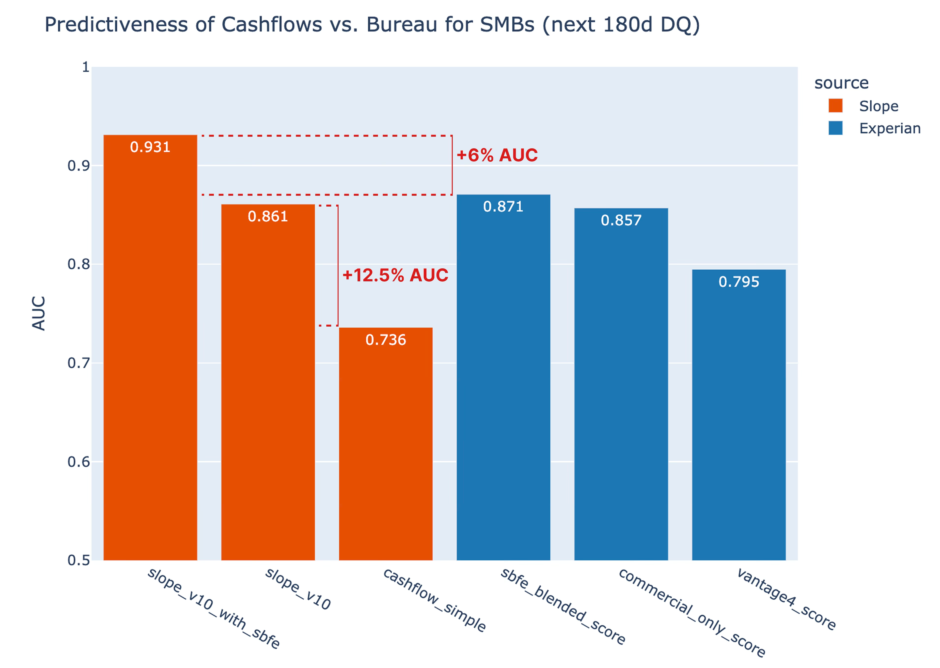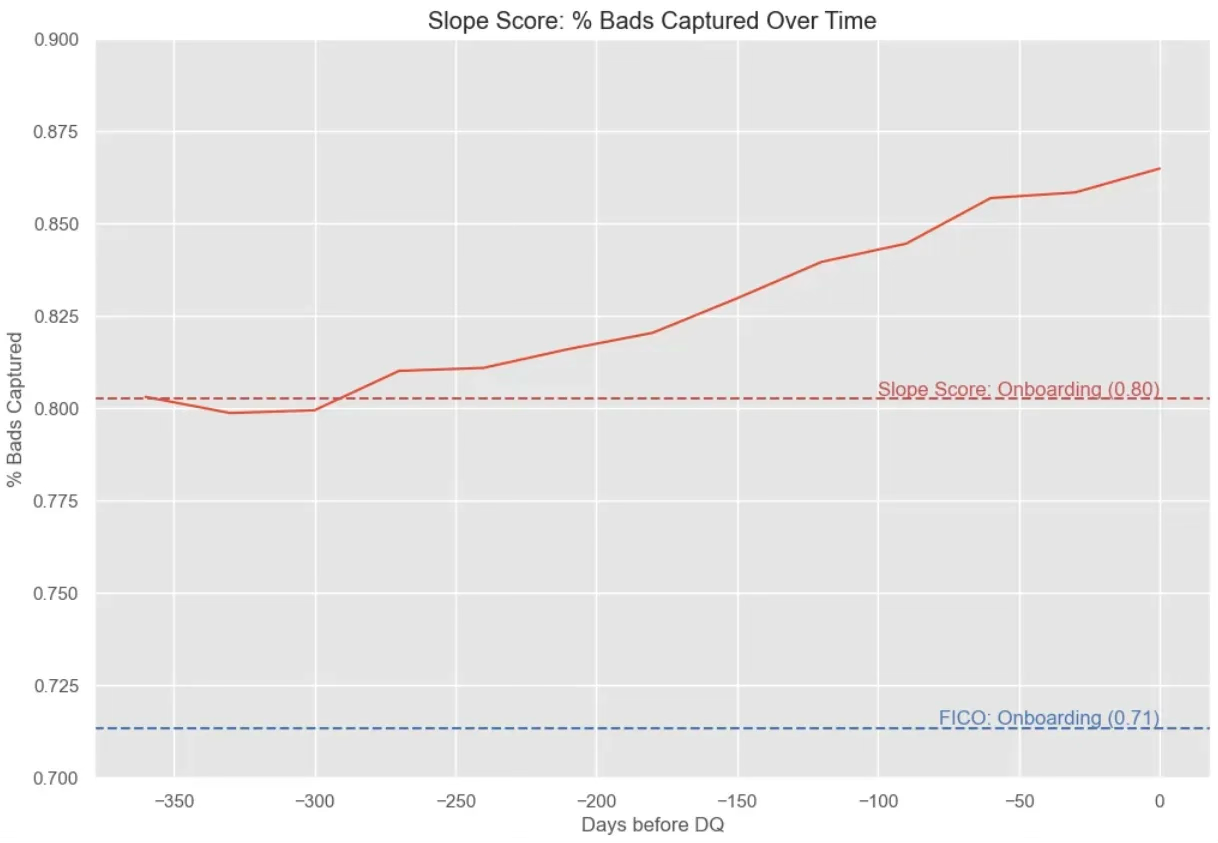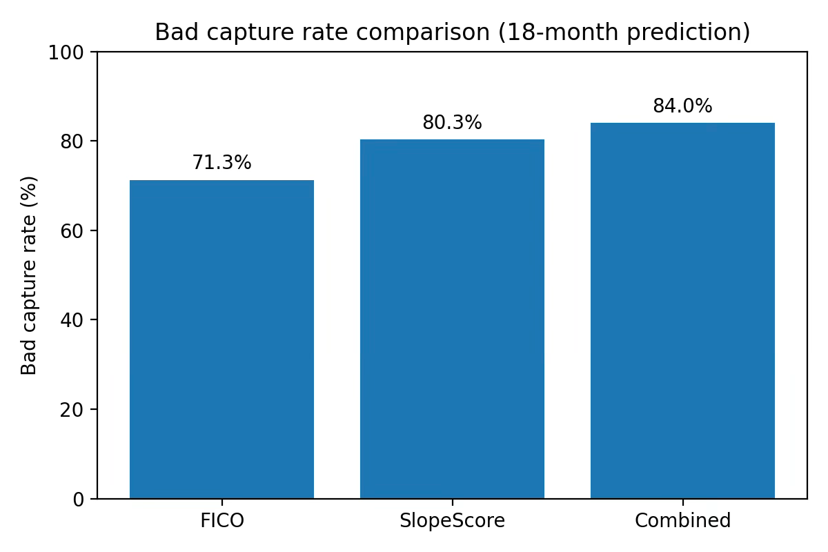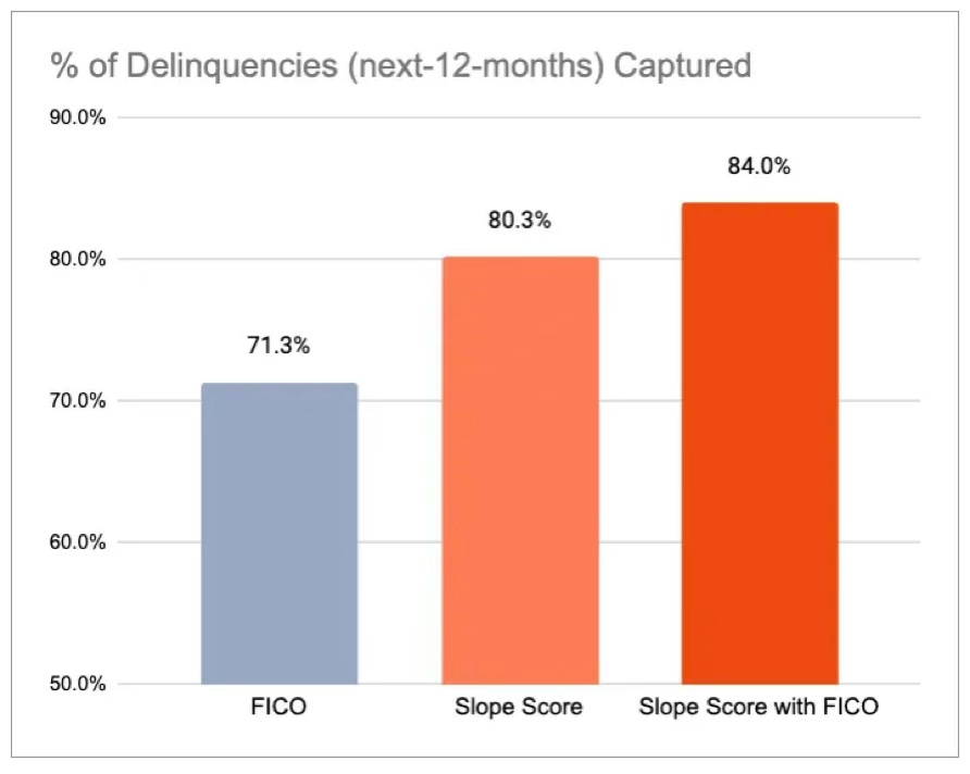 In a published case study with an anonymized “top U.S. bank,” Slope reports $868M in new profitable originations to near-prime and thin-file borrowers and a head-to-head bad capture improvement versus FICO.